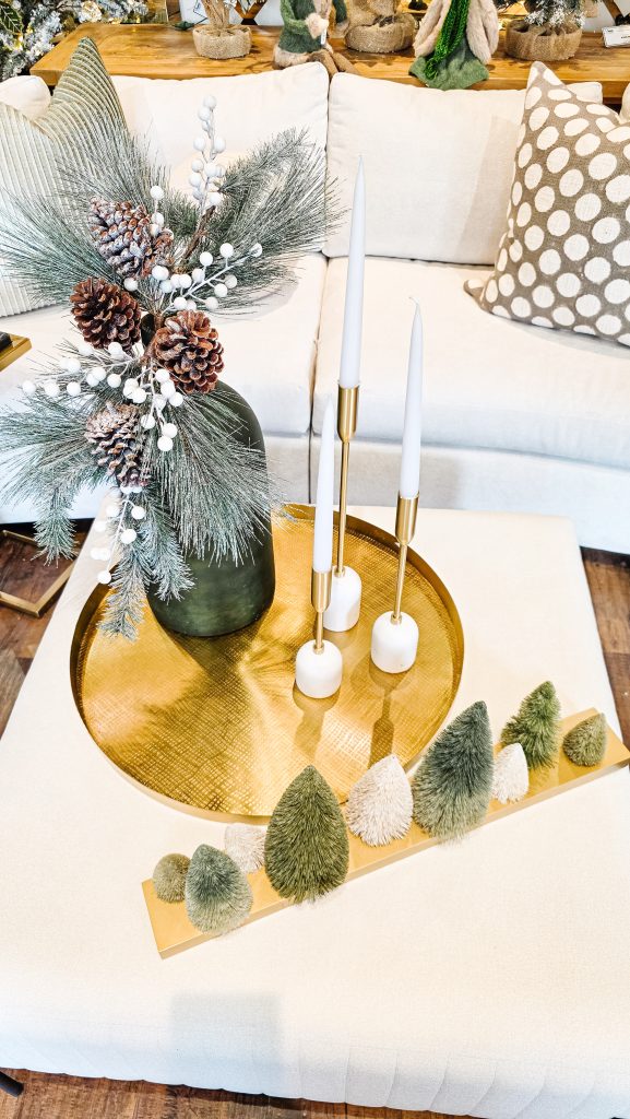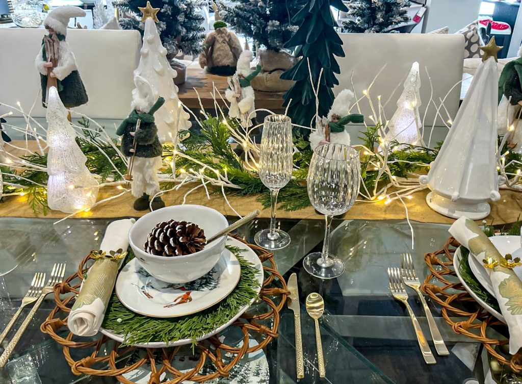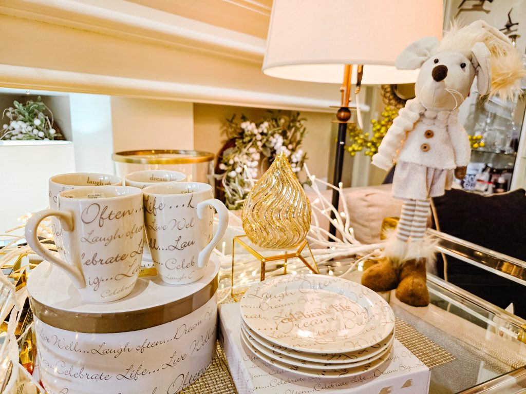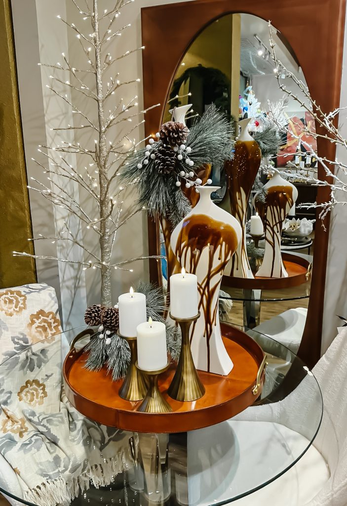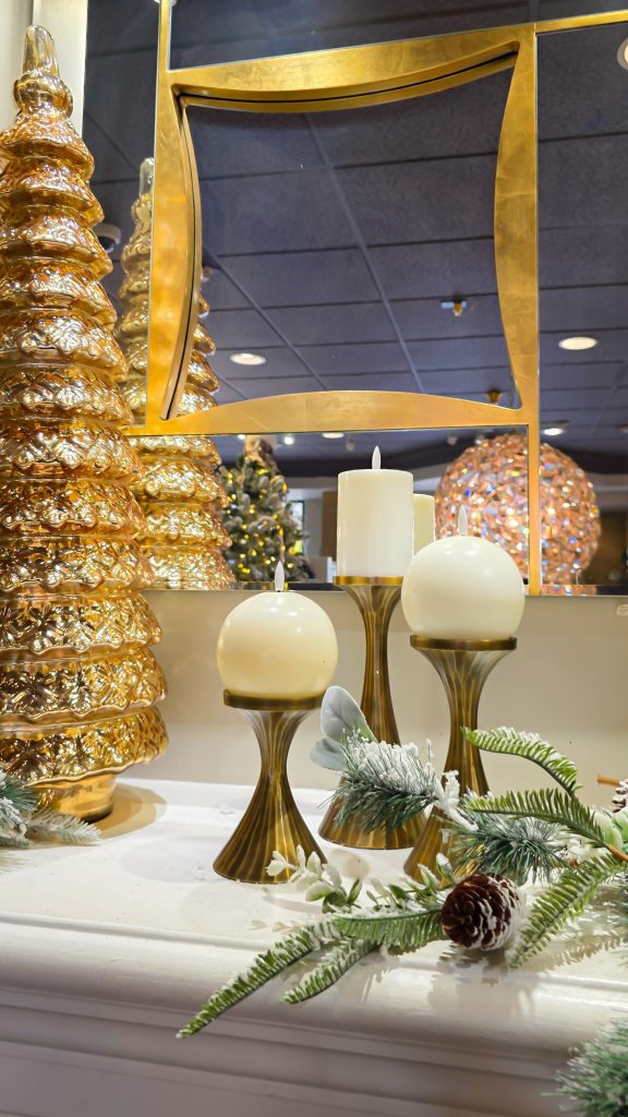 Lighting truly transforms a space, and our options for the holiday and beyond bring a soft, inviting glow to every corner. Think twinkling fairy lights, glowing branches, various LED lamps and elegant candleholders that sparkle against rich metallics and natural greenery. The right lighting doesn’t just illuminate. It creates atmosphere, setting the mood for those cozy evenings and joyful gatherings.